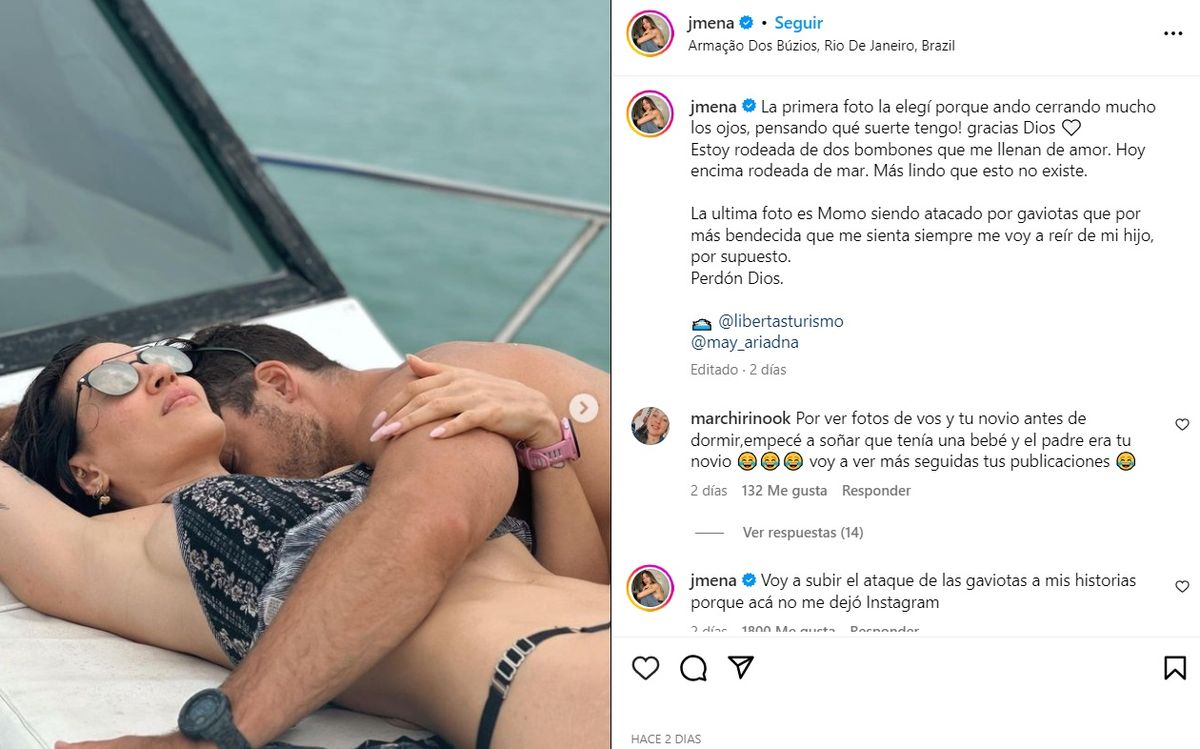 Jimena mostró varias imágenes y videos en sus historias de Instagram con algunos de los lindos momentos que pasaron los tres en la recorrida por los distintos lugares de Brasil.