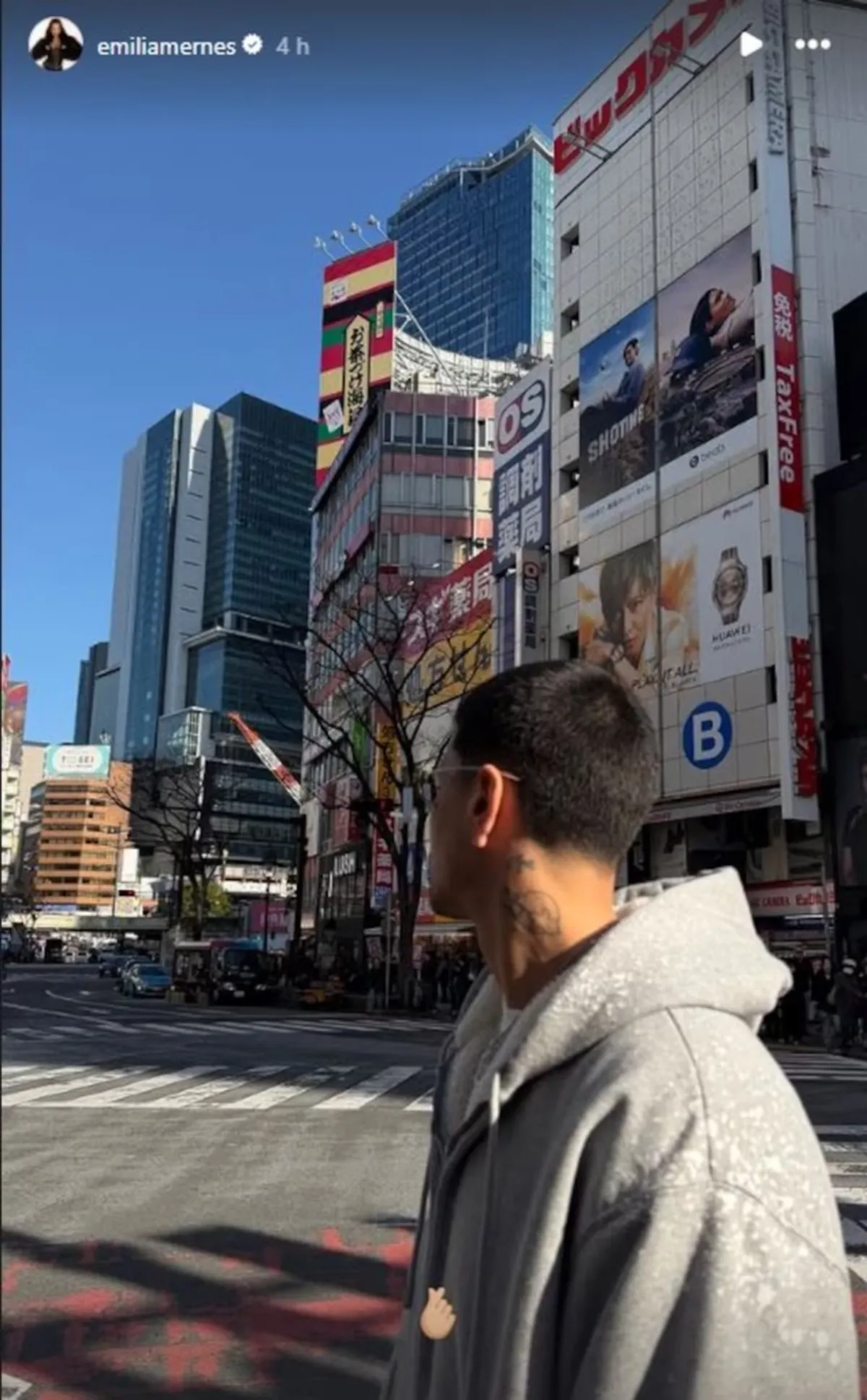En las horas siguientes, la cantante compartió distintas postales del paisaje urbano de la ciudad. En una de las imágenes se la ve recorriendo el famoso barrio de Shibuya, considerado uno de los puntos más icónicos de Tokio y el corazón de la cultura joven, la moda y la vida nocturna.