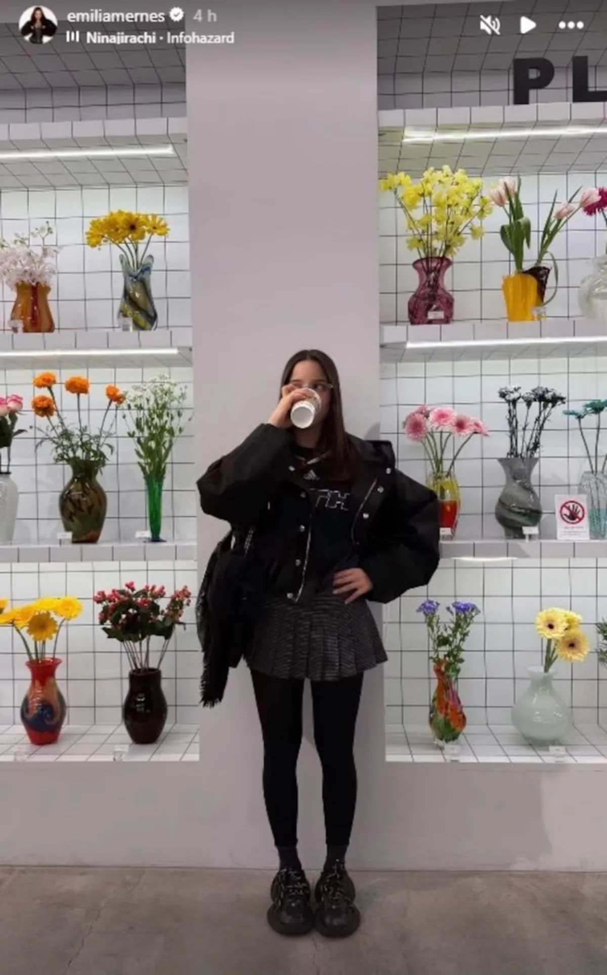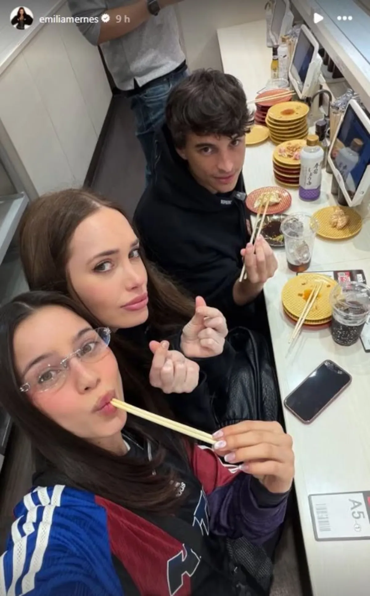 Fue Emilia quien anunció la llegada a Tokio a través de sus redes sociales. En una historia de Instagram escribió “Konichiwa”, el saludo japonés para decir “hola”, junto a una foto en la que aparece con Duki y sus amigos posando frente a un espejo curvo dentro de un supermercado.