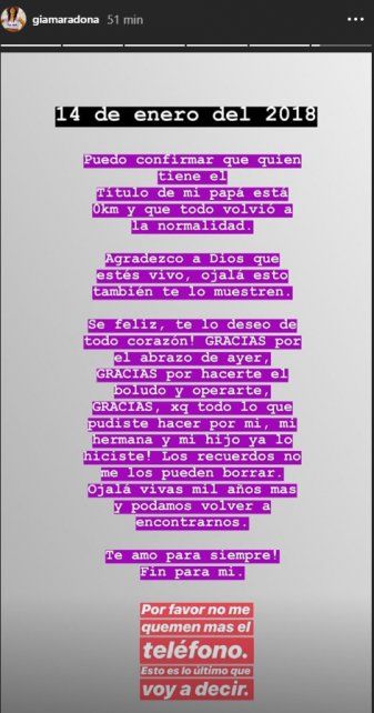 — Dalma Maradona (@dalmaradona) 10 de enero de 2019