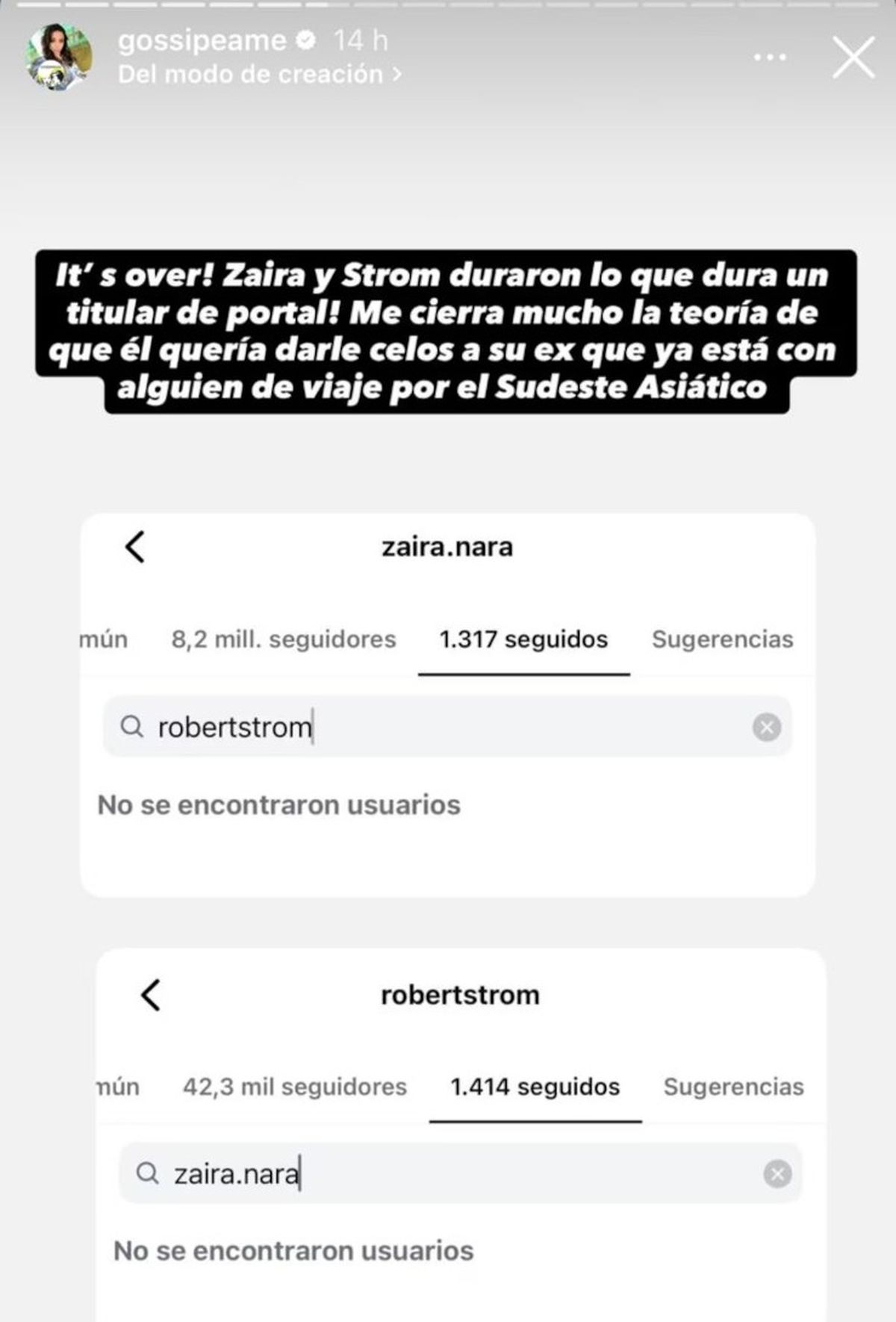 La información fue revelada por Pochi de Gossipeame, quien detectó un detalle clave en Instagram: Zaira y Strom dejaron de seguirse mutuamente. Un gesto que, en el universo del espectáculo, suele leerse como una señal inequívoca de final.