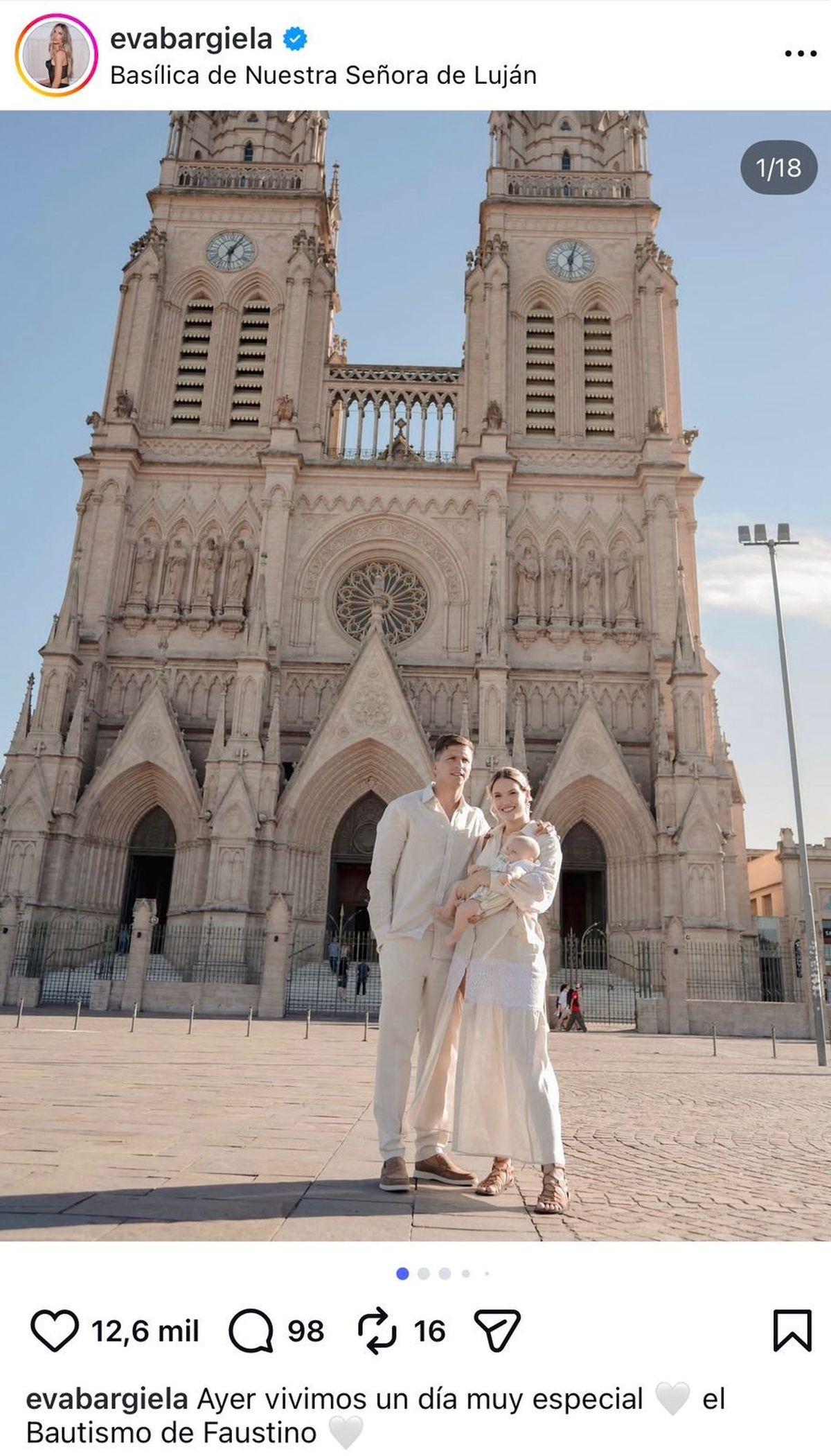 Este viernes 26 de diciembre, los papis decidieron bautizar a su hijo en la Basílica de Luján, uno de los templos más emblemáticos del país. La ceremonia se desarrolló en un clima de recogimiento y alegría, rodeados de afectos y con la impronta especial que tiene ese lugar tan significativo para muchas familias argentinas.
