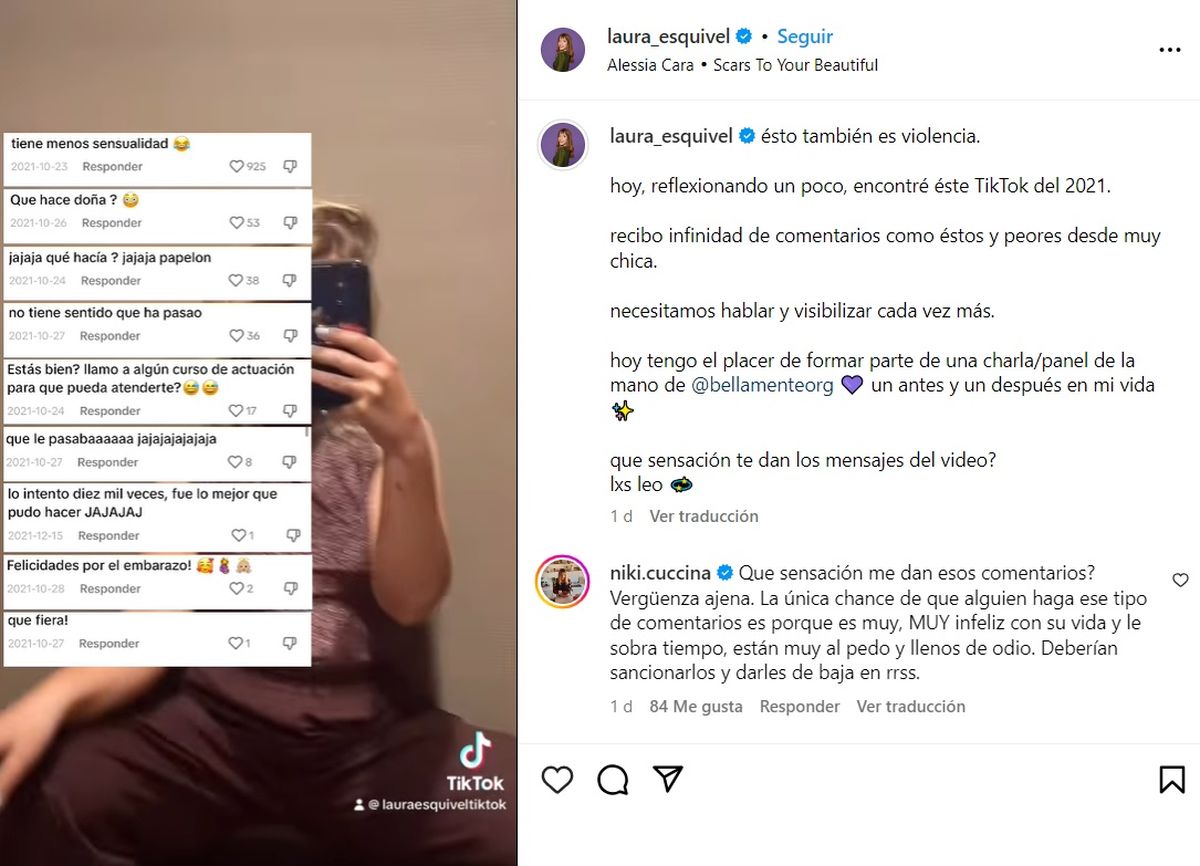 Y en un posteo desde su cuenta de Instagram, Laura Esquivel explicó: "Esto también es violencia. Hoy, reflexionando un poco, encontré este TikTok del 2021. Recibo infinidad de comentarios como éstos y peores desde muy chica. Necesitamos hablar y visibilizar cada vez más".
