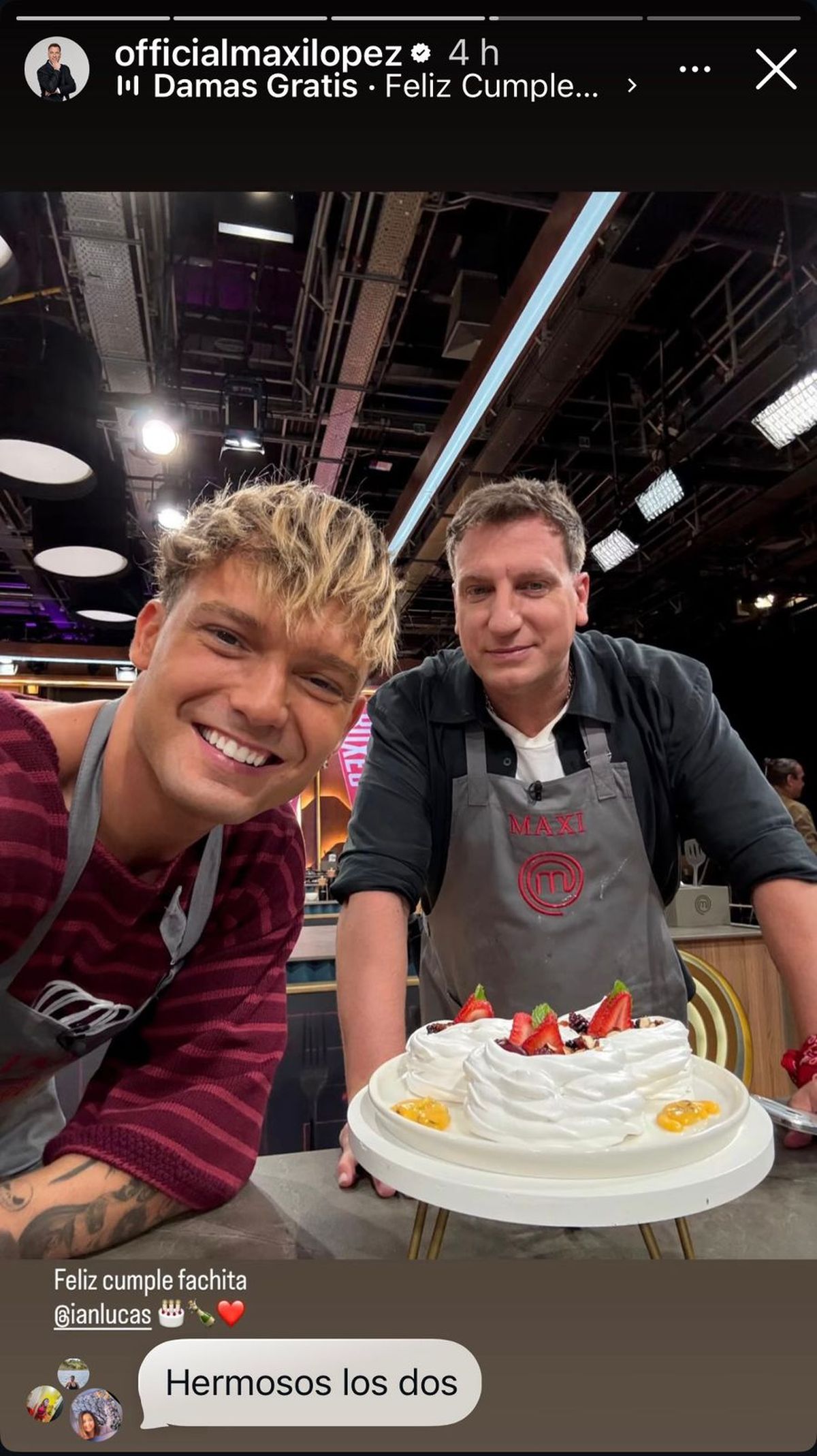 Por su parte, Maxi López también se sumó a los saludos desde sus historias de Instagram. Allí publicó una imagen junto a Ian, con quien durante el programa solían bromear diciendo que era su hijo, y le dedicó un mensaje breve pero simpático: “Feliz cumple Fachita”.