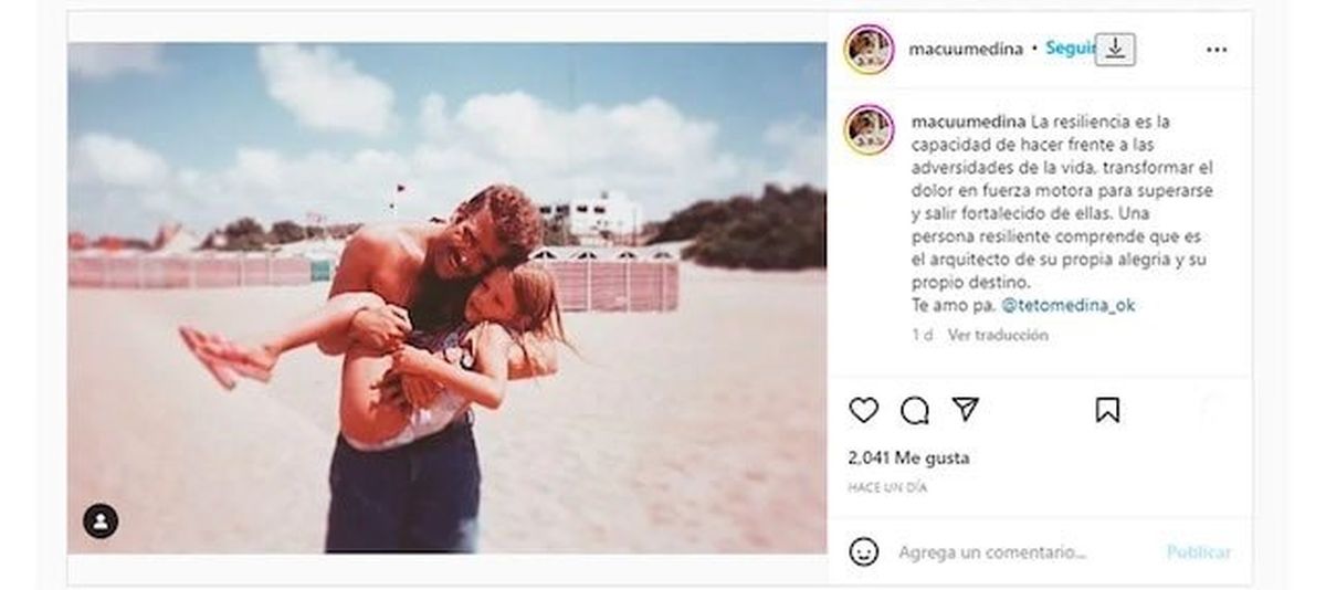 Con una foto de ella siendo chica en la playa, sobre los brazos de su padre escribió: “La resiliencia es la capacidad de hacer frente a las adversidades de la vida, transformar el dolor en fuerza motora para superarse y salir fortalecido de ellas”.