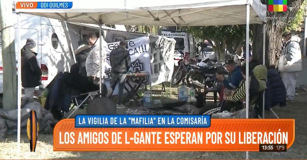 En este contexto, mientras se aguarda por una resolución de su futuro y las próximas horas son claves, los allegados, familia y fans de L-Gante montaron una carpa en la puerta de la DDI de Quilmes donde pasan todas estas horas a la espera de que el artista recupere su libertad.