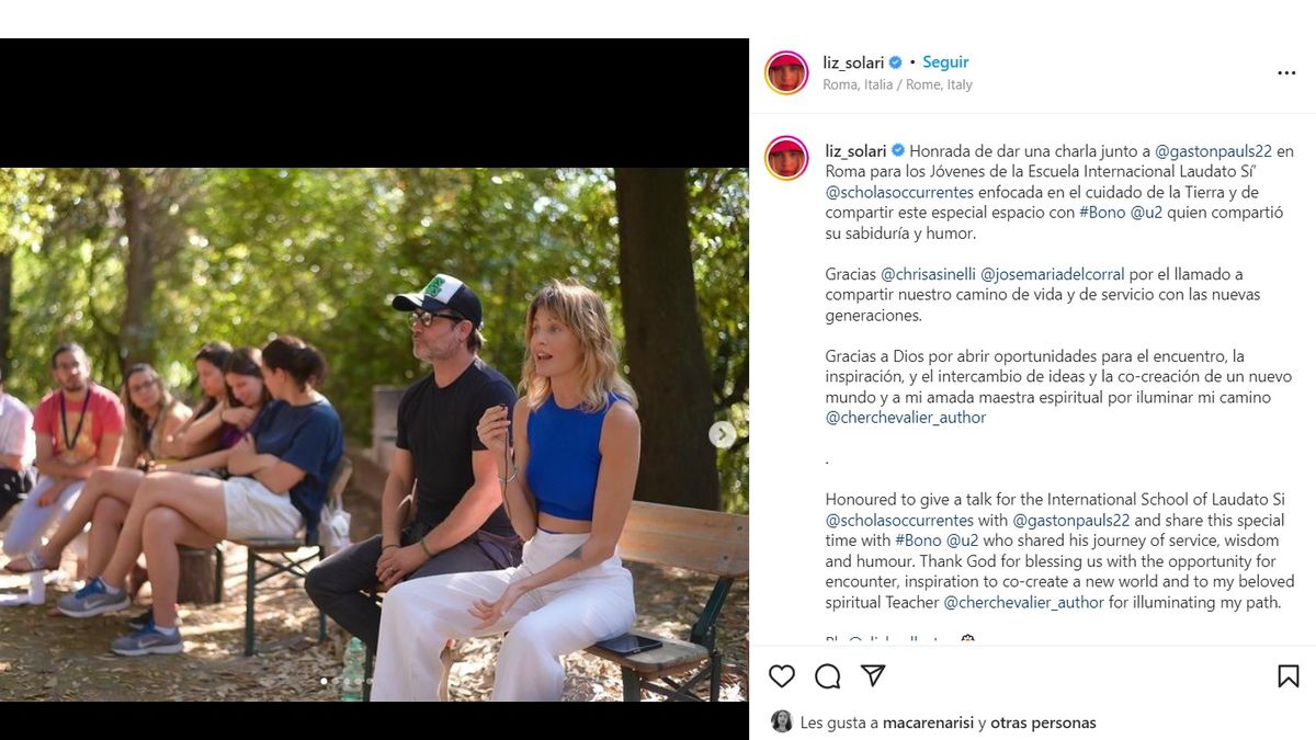 La modelo Liz Solari y el conductor Gastón Pauls se encuentran en Roma, Italia, donde dieron una charla grupal y se mostraron juntos desde las redes sociales. Mirá.