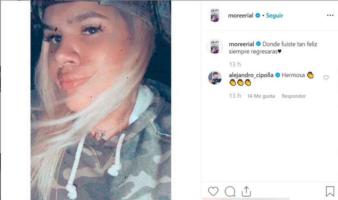 Y ahora, con poca presencia en su cuenta de Instagram, More volvió y con una foto de ella puso un llamativo mensaje: “Donde fuiste tan feliz siempre regresaras”, escribió junto a un corazón negro.