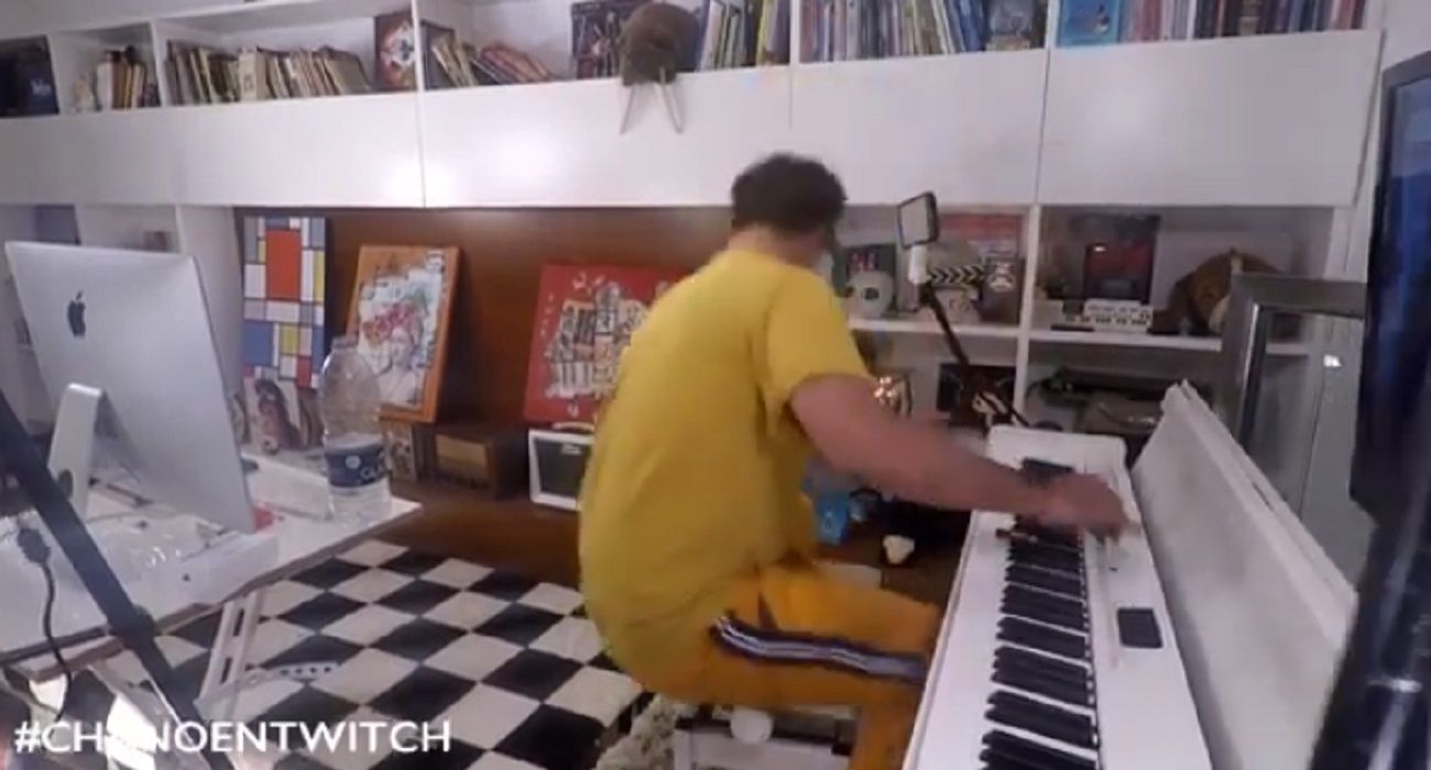 En uno de los videos que subió, se lo ve tocando el teclado y luego, al querer levantarse, termina revolcado en el suelo.