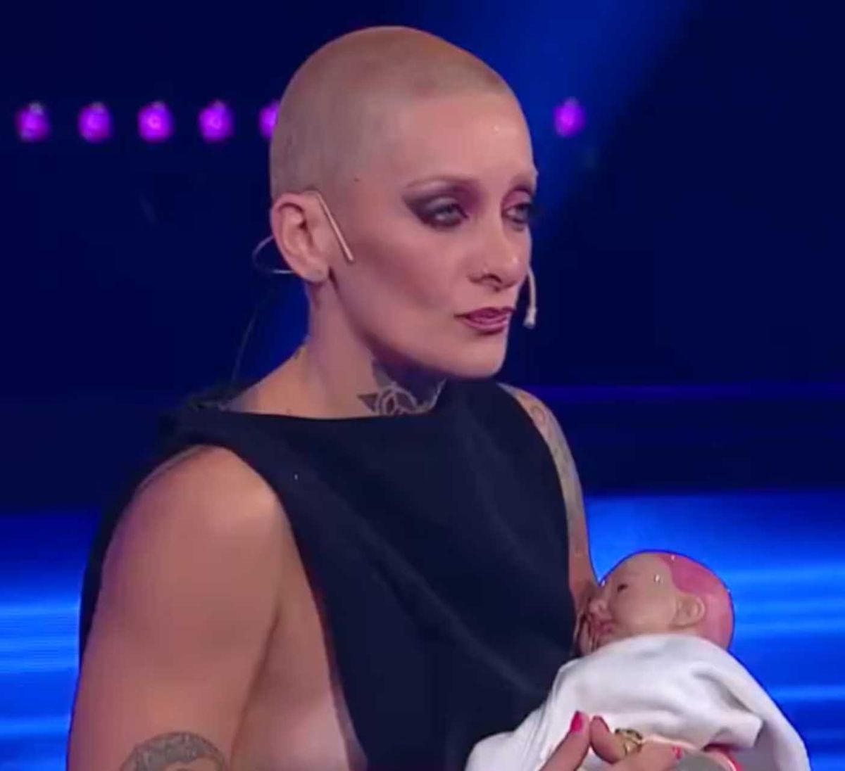 La reciente eliminada se presentó en el debate con un muñeco de bebé, y bromeó: "He venido con mis niños y he traído a mi bebé. Este es el niño Bauti y el niño Nico que los he cuidado”.