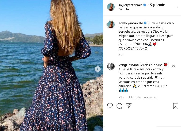 Ante esta grave situación, la cordobesa Loly Antoniale usó sus redes sociales para manifestar su angustia y pedirles a Dios y a la Virgen que llueva pronto.