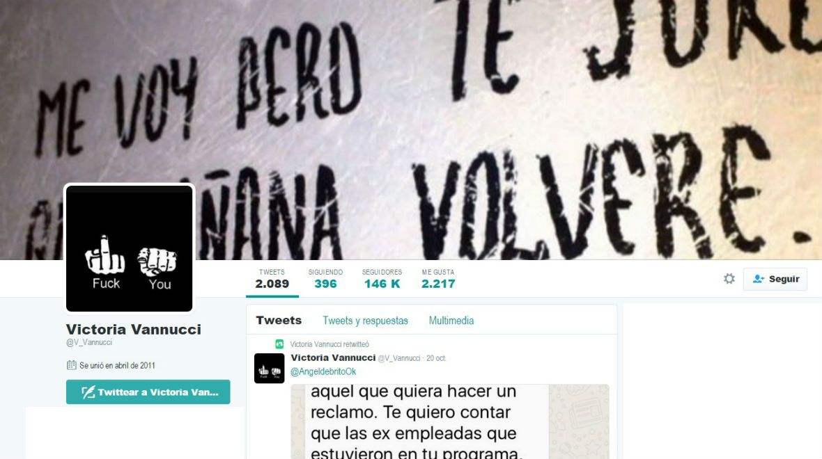 En la foto de su perfil puso el signo "Fuck you" y en la portada la frase: "Me voy pero te juro que mañana volveré".