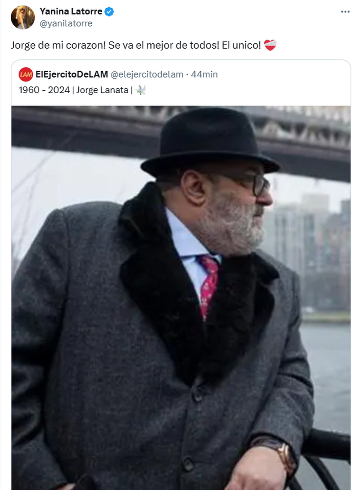 "Jorge de mi corazón! Se va el mejor de todos! El único!", expresó Yanina Latorre.