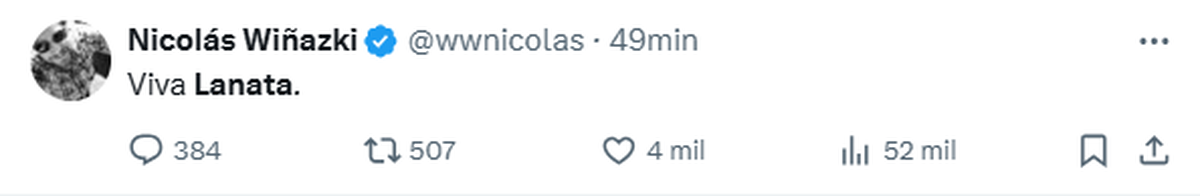Dolido por tan dura partida, Nicolás Wiñazki manifestó: "Viva Lanata".