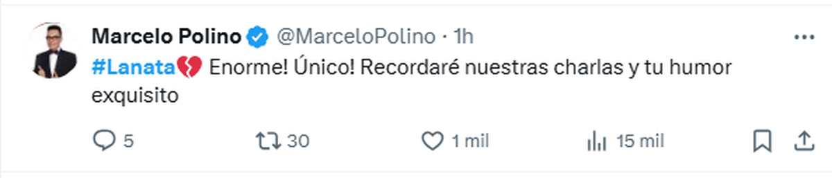 "Enorme! Único! Recordaré nuestras charlas y tu humor exquisito", así definió Marcelo Polino a su colega.