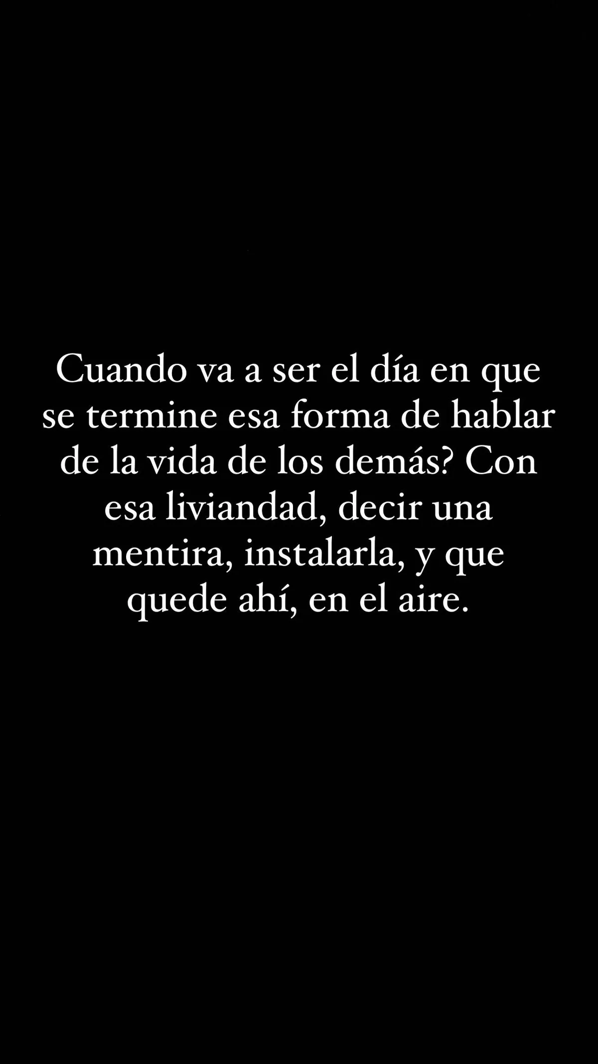 "¿Cuándo va a ser el día en que se termine esa forma de hablar de la vida de los demás? Con esa liviandad, decir una mentira, instalarla y que quede ahí, en el aire", agregó la joven en otra de las historias.