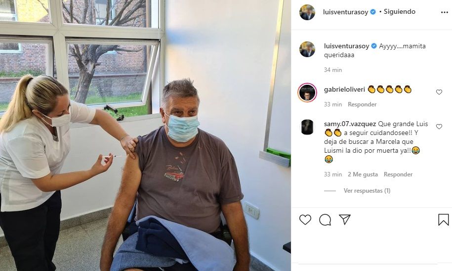 En su cuenta de Instagram, Luis compartió dos fotos en la que se lo ve recibiendo la dosis: "Ayyyy....mamita queridaaa", comentó con humor mientras le aplicaban la vacuna.
