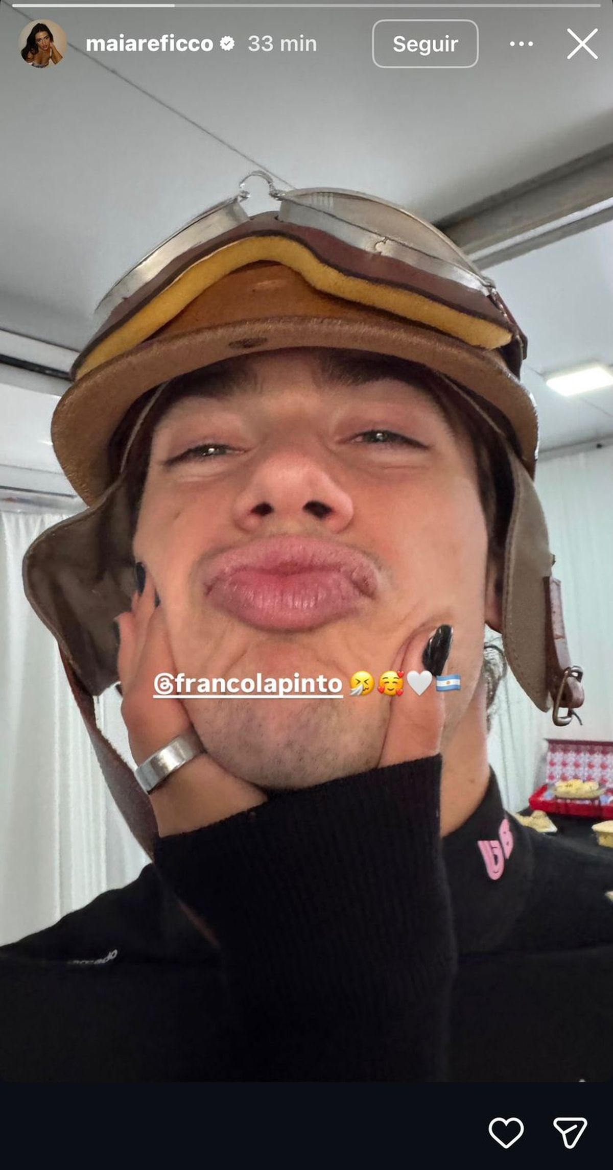 A través de sus historias de Instagram, Maia compartió una foto que le tomó a Franco: en la imagen, su mano sostiene el rostro del piloto mientras él le lanza un beso a cámara. Además, lo arrobó y sumó emojis de amor, un detalle que muchos interpretaron como una confirmación implícita del vínculo.