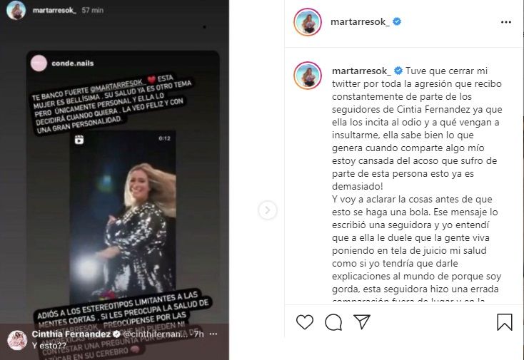 "Segundo, es mi trabajo y el de muchas familias que trabajan conmigo y es tan honesto como el de ella que es flaca y vende en sus redes miles de productos para ser flaca. Pedir aceptación inclusión e igualdad de oportunidades NO ES FOMENTAR LA GORDURA”, remarcó.