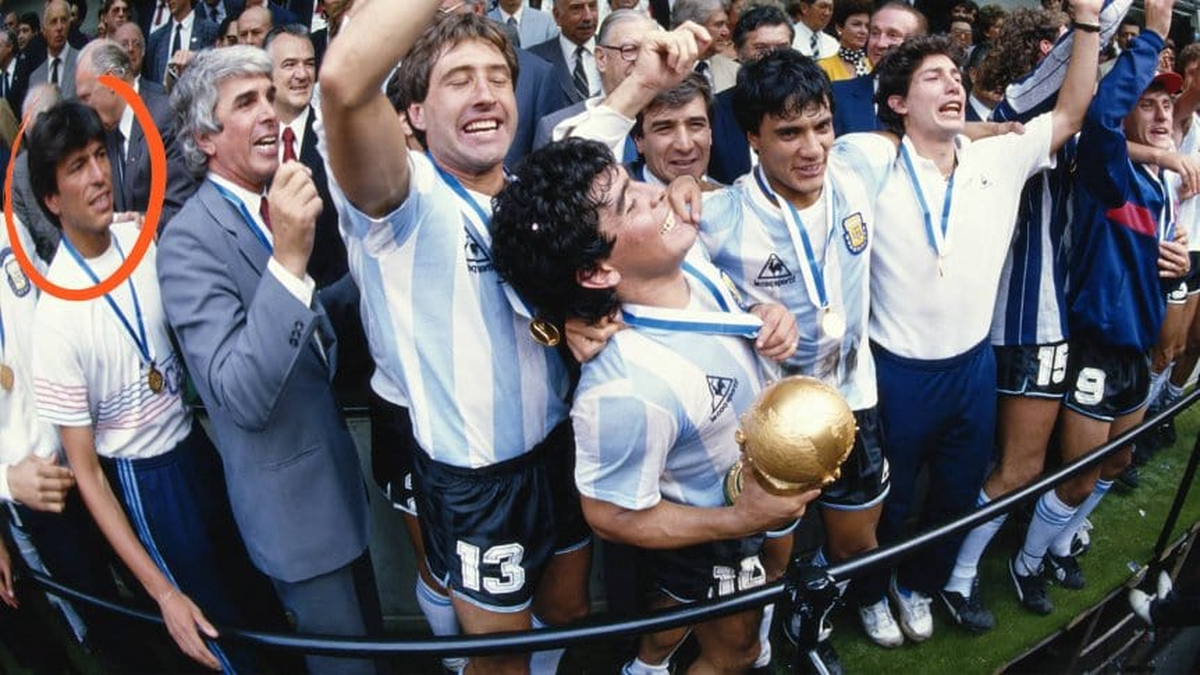 Aquí la foto del día que Diego Maradona alzó la Copa del Mundo y Passarella estuvo vestido con la indumentaria de los deportistas pero sin la celeste y blanca.
