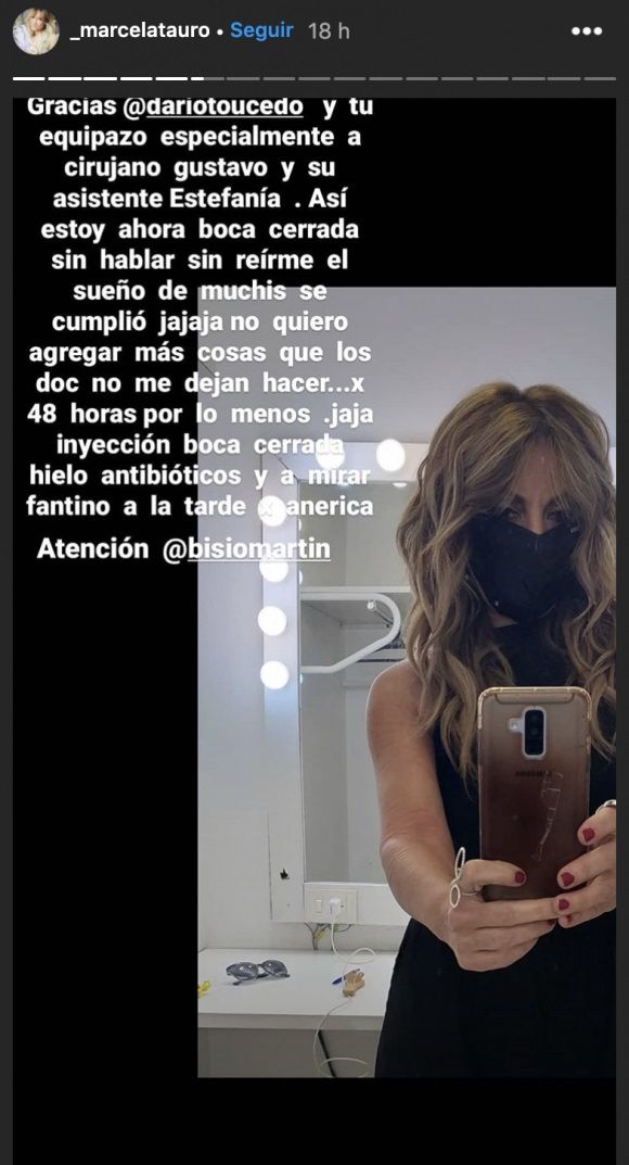 Marcela Tauro fue operada de urgencia por un dolor en la boca. La panelista de "Fantino a la tarde", América, compartió una imagen en Instagram donde contó cómo se encuentra y los pasos a seguir.