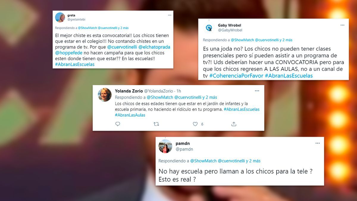 "El mejor chiste es esta convocatoria. Los chicos tienen que estar en el colegio, no contando chistes en un programa de TV", "¿Es una joda no? Los chicos no pueden tener clases presenciales, pero sí pueden asistir a un programa de tv?", "Los chicos de esas edades tienen que estar en el jardín de infantes y la escuela primaria, no haciendo el ridículo en un programa", "Es imposible permitir esta locura. Los chicos tiene que estar en los colegios", fueron algunas de las reacciones que generó la publicación.