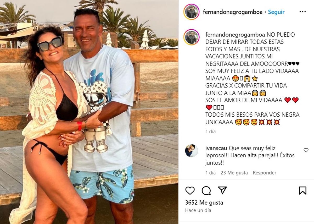 "No puedo dejar de mirar todas estas fotos y más de nuestras vacaciones juntos mi negrita del amor", comenzó su mensaje el Negro, profundamente enamorado.