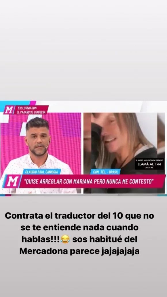 Y en otra historia, escribió: "CPC (Claudio Paul Caniggia), con esta cara no podés ni co… Así le quedó la dentadura de comer tanta polla dura y no creo que sea la de CPC".