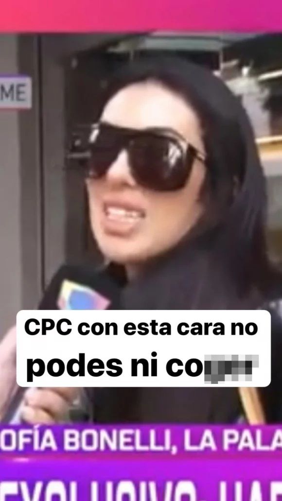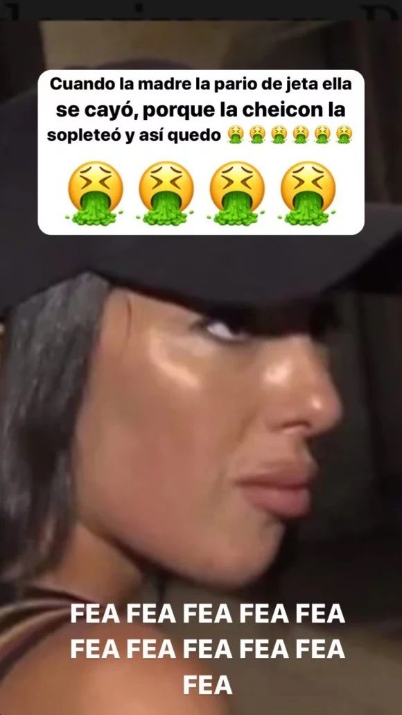 En otro polémico posteo, aparece una foto de Bonelli, con la palabra fea repetida varias veces: "Cuando la madre la parió de jeta, ella se cayó porque la ‘cheicon’ la sopleteó y así quedó”, arrojó, con varios emojis de una carita vomitando.