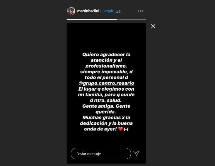 Respecto a eso, Martín escribió en las historias de Instagram: