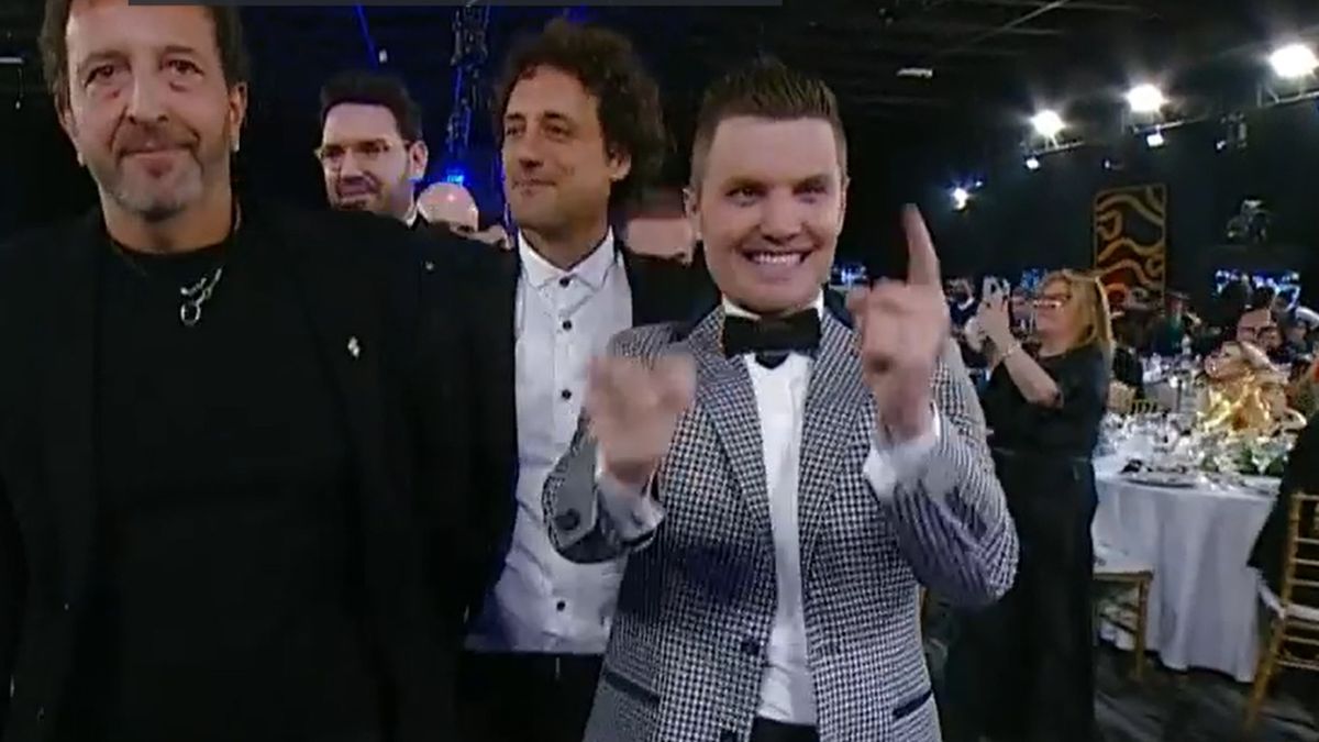 "Muchas gracias. Fue una maravilla laburar con ellos. A mi familia, a mi vieja que están mirando. Qué lindo juntarnos", dijo Campi cuando recibió su premio.