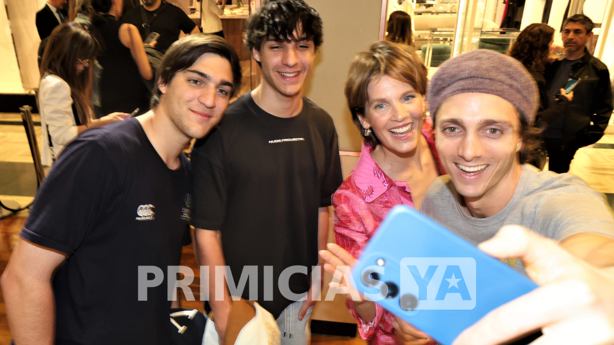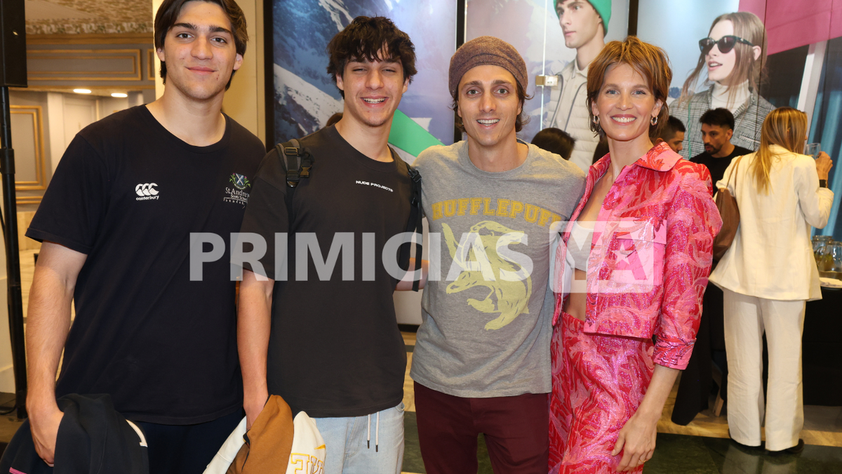 En tanto, su novio apostó a un estilo más informal y descontracturado: pantalón bordó, remera casual ris con detalles en blanco y amarillo y gorro en composé.