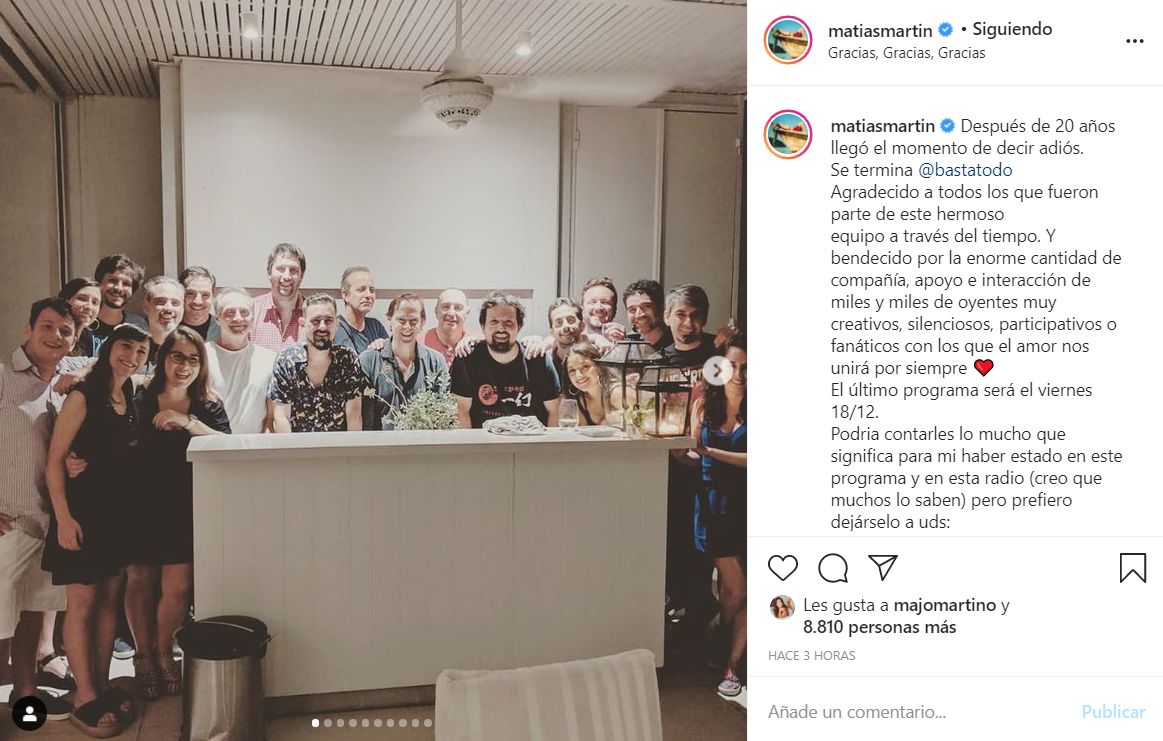 Y expresó: “Arranqué con 30 años y lo cierro con 50. Arranqué con la crisis del 2001 y termino con una pandemia, qué arranque, qué final, y en el medio la vida misma. Nueve presidentes. Hubo cosas que hicieron que Basta quede en la huella de la gente porque pasaron en horario de programa: que el Papa era argentino, que murió Diego Maradona, Fernando Peña o la noticia que sea”.
