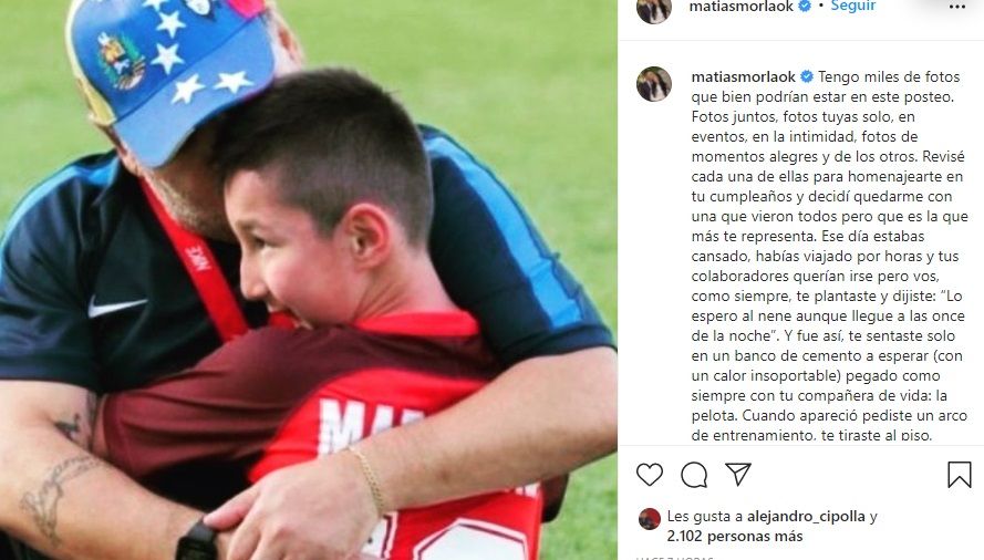"Tengo miles de fotos que bien podrían estar en este posteo. Fotos juntos, fotos tuyas solo, en eventos, en la intimidad, fotos de momentos alegres y de los otros. Revisé cada una de ellas para homenajearte en tu cumpleaños y decidí quedarme con una que vieron todos pero que es la que más te representa", comenzó Morla su mensaje en Instagram.