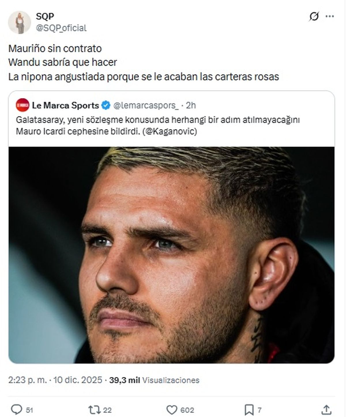 Es así que desde la cuenta de X de Sálvese Quien Pueda (América TV), Yanina Latorre, quien sigue la novela turca desde el día uno, reveló que hoy por hoy a Icardi no le renovarían el contrato.