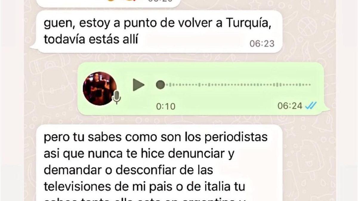 “Hicimos el amor y me dijo que si yo fuera una mujer biológica sería diferente. Voy a volver a Turquía la semana que viene”, contó la modelo a Mitre Live. Además, dijo que el rosarino le reveló que está soltero desde hace más de un año y que no se separa del tomo para que sus hijas no sufran.