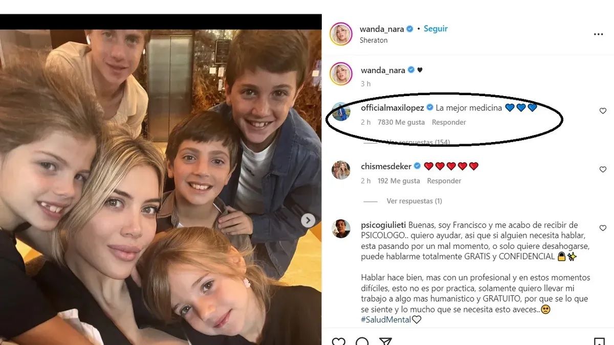 Hace unos días, Maxi López comentó buena onda una foto de Wanda en el reencuentro con sus hijos: "La mejor medicina", indicó el ex futbolista en la imagen que subió la rubia.
