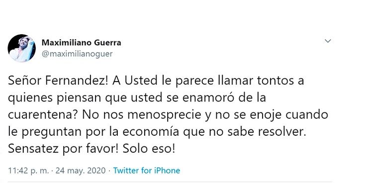 LEER MÁS: Juan Pablo Varsky criticó la cuarentena obligatoria y despertó polémica en las redes