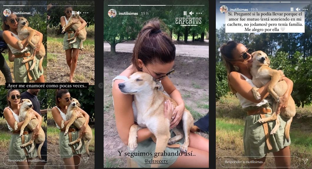 Desde allá se sacó unas fotos y aseguró que se enamoró. La morocha encontró un perro entre la cosecha de parras. El perro hasta se mostró sonriendo con ella.