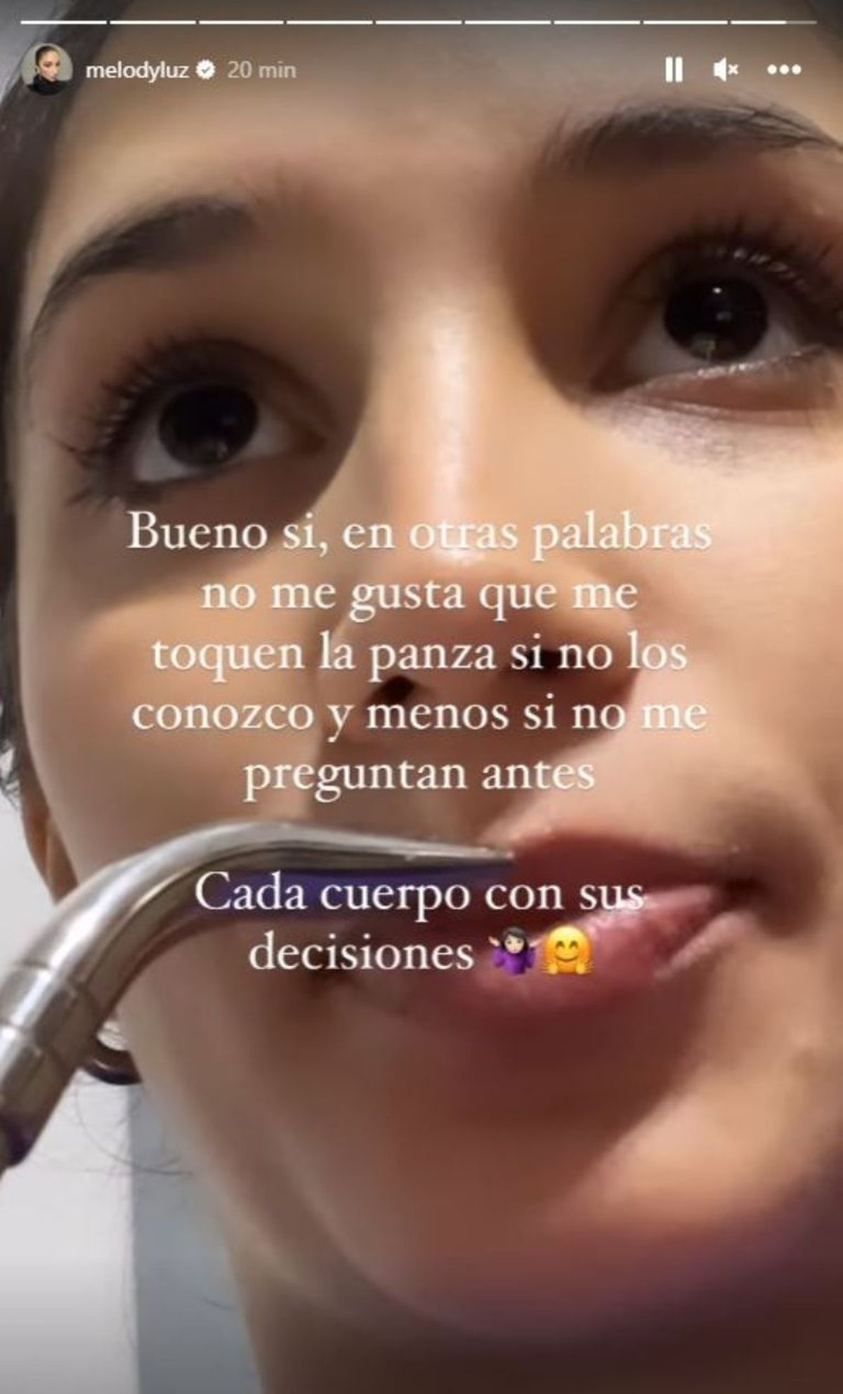 Y volvió a reforzar la idea principal: “Me acaba de sorprender eso, que los nenes chiquitos me piden permiso para tocarme la panza y la gente grande no”. En otra publicación, la novia de Alex Caniggia resumió: “Bueno sí, en otras palabras, no me gusta que me toquen la panza si no los conozco, y menos si no me preguntan antes. Cada cuerpo con sus decisiones”.