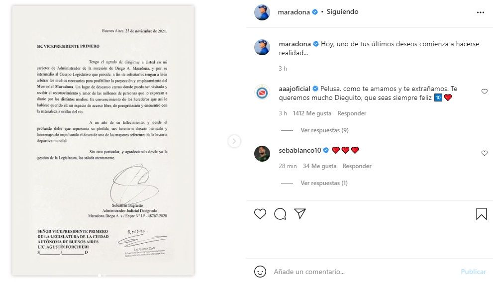 "Hoy, uno de tus últimos deseos comienza a hacerse realidad", señala el breve texto con el que la cuenta oficial de Diego Maradona en Instagram anunció algo que estaban esperando los fans de todo el mundo.