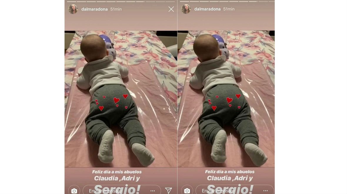 La hija del Diez mostró una foto de su hija Roma y saludó a sus abuelos, pero no mencionó al ex futbolista.