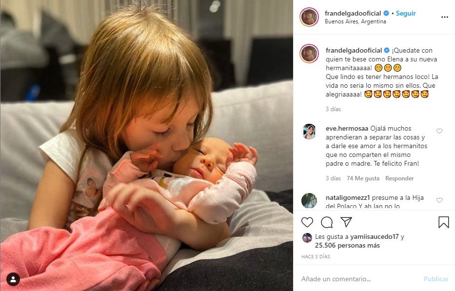 "¡Quedate con quien te bese como Elena a su nueva hermanitaaaaa! Qué lindo es tener hermanos loco! La vida no seria lo mismo sin ellos. Que alegríaaaaa!", expresó feliz el ex "Gran Hermano".