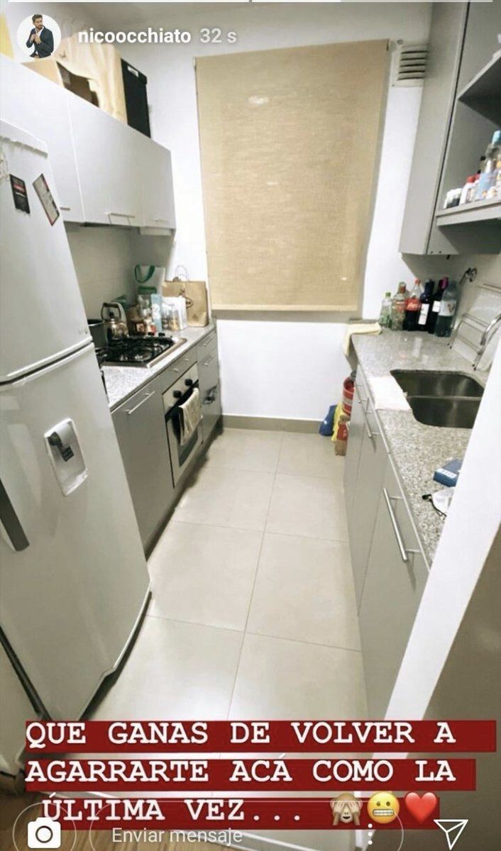 “Qué ganas de volver a agarrarte acá como la última vez”, escribió Nico en su cuenta de Instagram, junto a una imagen de una cocina, que se supone que se trata de la de su hogar. Pero minutos después terminó eliminado la historia, debido al revuelo que armó.