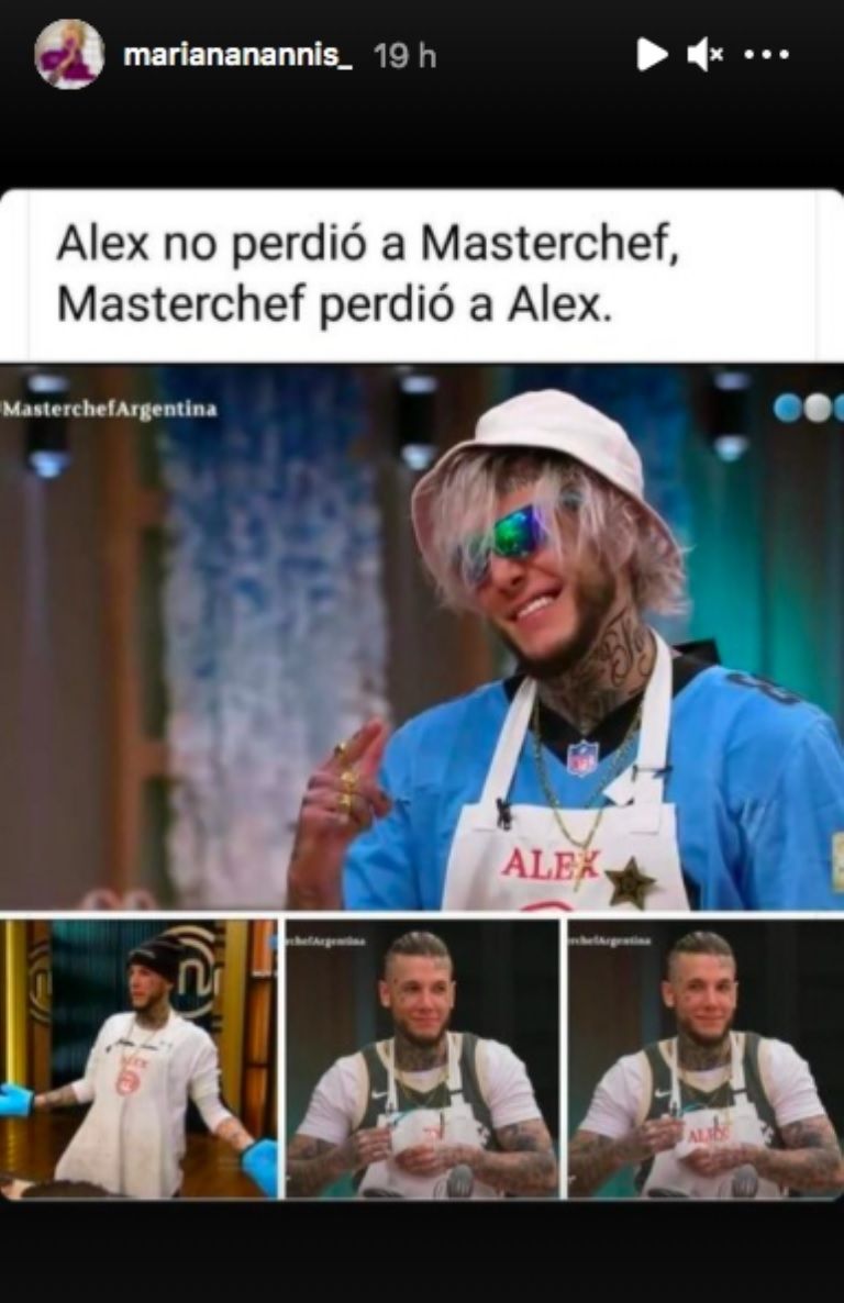 Y ahora, Mariana Nannis reapareció para defender a su hijo y lo hizo a través de sus redes sociales. "Alex no perdió Masterchef, Masterchef perdió a Alex", escribió con un compilado de fotos.
