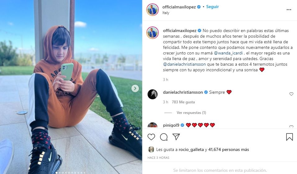 En tanto, Maxi López finalizó con un mensaje a su novia, Daniela Christiansson: "Gracias @danielachristiansson que te bancas a estos 4 terremotos juntos siempre con tu apoyo incondicional y una sonrisa".
