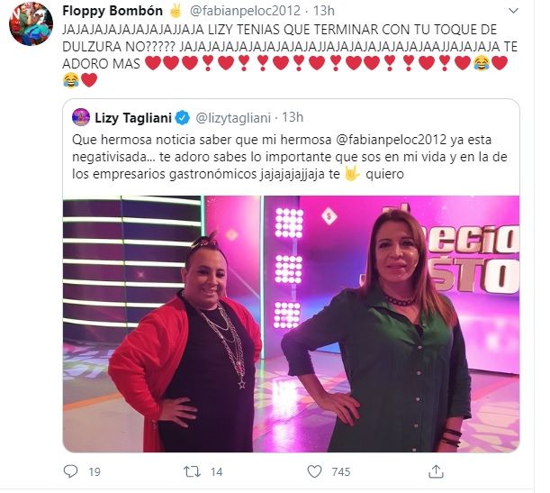 Por suerte, tanto Lizy como su asistente, Floppy, ya están curadas del coronavirus. Lo propio sucedió con uno de los invitados, Miguel Ángel Cherutti, quien ya negativizó.