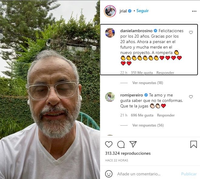 Luego de su testimonio al aire, desde Instagram el periodista agradeció el apoyo de estos años: "Gracias por estos 20 años de @intrusos!!! Recién ahora caigo de lo que significó el programa en nuestras vidas. Por eso les dejo esto por acá al lado de un GRACIAS enorme!!!".