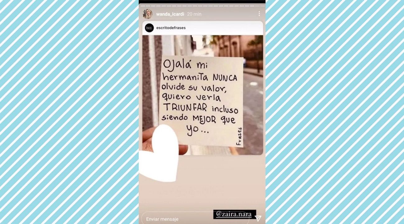 Al ver esto, Zaira compartió el mensaje de Wanda Nara en sus propias redes.