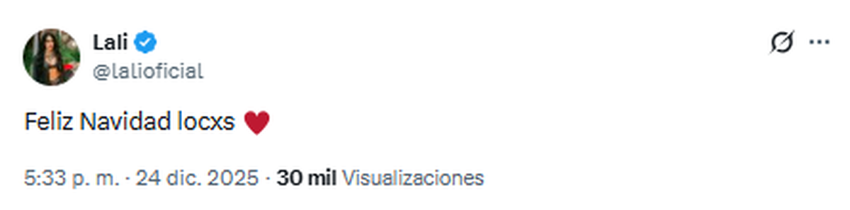 "Feliz Navidad locxs", escribió Lali Espósito, quien siempre se anota en este tipo de mensajes.